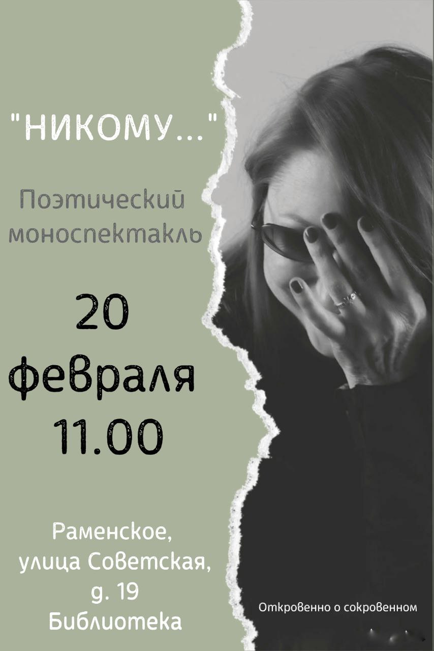 "Никому..."- это история, в которой правда переплетается с вымыслом, смешное с грустным,чтение стихов о важном с разговором о ценности жизни. Это попытка встретиться с собой и стать ещё немного счастливее через открытость миру.